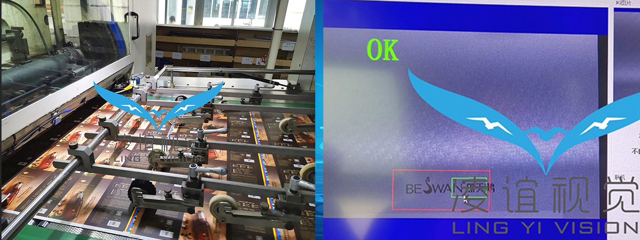 啤機/模切機在線檢測系統(tǒng)是加裝在模切機上,通過對每張待模切的卡紙的局部成像,依據圖像中的條碼、二維碼、圖形文字、燙金燙銀等特征,來判斷該待模切的卡紙是否存在混料、倒頁、白頁、漏印、漏燙金、漏燙銀,局部印刷不良等不良現象。當發(fā)現不良時及時輸出停機報警信號,供人工排除問題物料并復位重新運行,以確保模切后的產品的質量,該系統(tǒng)的高速穩(wěn)定運行保障了生產的良率,杜絕了不良產品的產生,避免了客訴現象的產生,大大提高了印刷廠的生產效率。